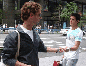 They will feel compelled to take it. Not because you convinced them that they want it, but because they now HAVE to either say “No,” or literally walk around you. Obviously, in NYC, there will be plenty of people that will just get extra annoyed with you and will continue on their way, but most will just smile and take one. If you are managing the day’s activity, be sure to demonstrate this for your team. It will make a difference. Every time I manage a street team that says “no one wants to take one,” I’ll pull this move out and go 5 for 5 in a matter of seconds.